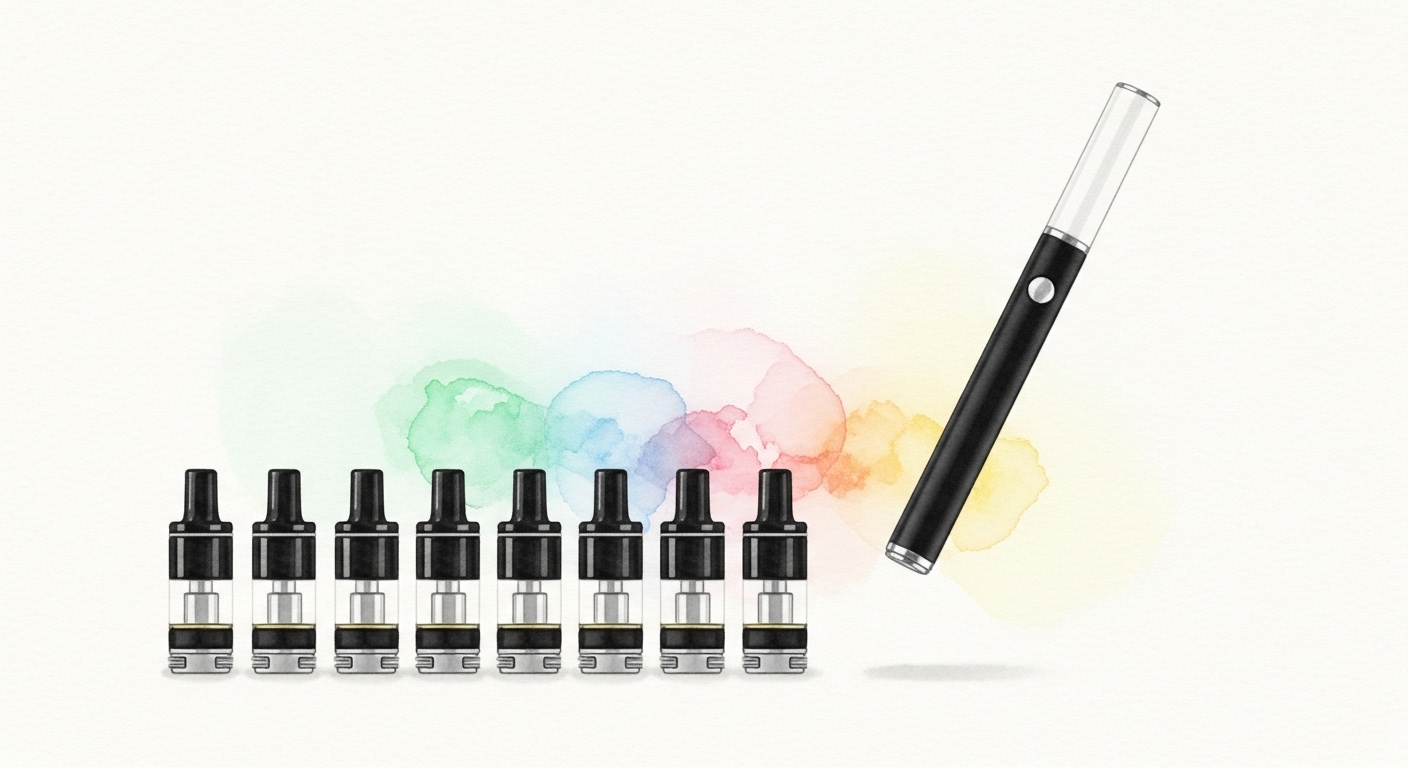 液漏れを防ぐためのコツとしては、強い衝撃を与えないことや、高温になる場所(夏の車内など)に放置しないことが大切です。また、長期間使わない時はカートリッジを本体から外しておき、購入時に付いていたシリコンキャップを付けて保管すると良いでしょう。