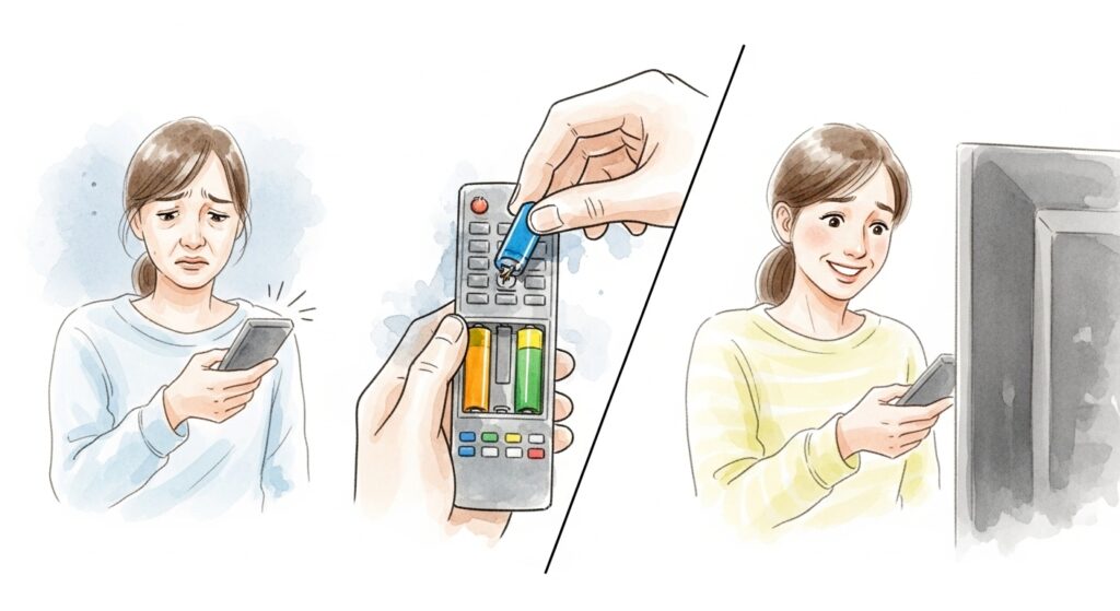 ここからは、「リモコンを買ったけどうまく動かない」「そもそもテレビが壊れているのかリモコンが悪いのかわからない」といったトラブルに直面している方への対策ガイドです。
